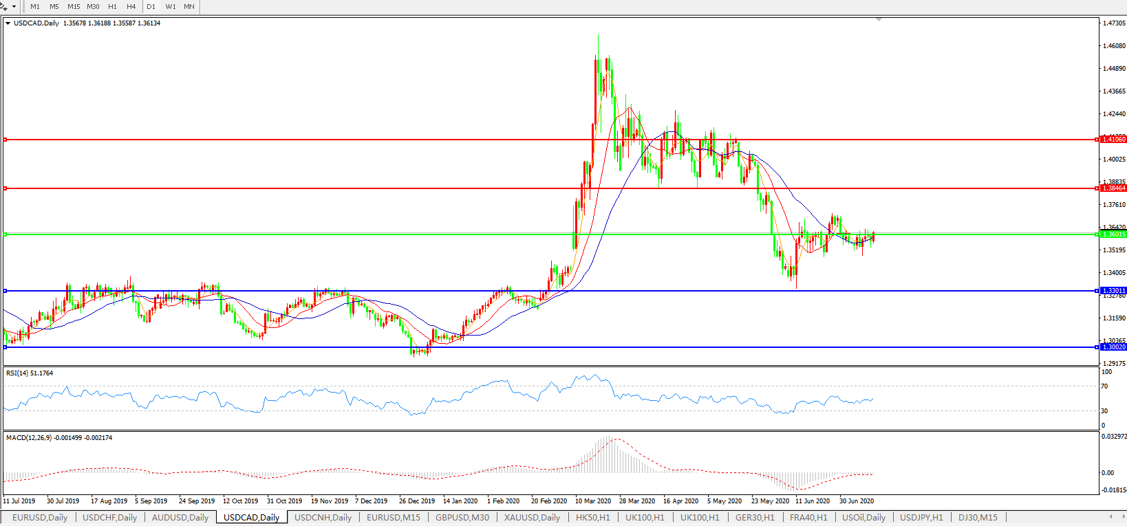 交易策略:在1.3600之下,看跌,目标价位为1.3300、1.3000