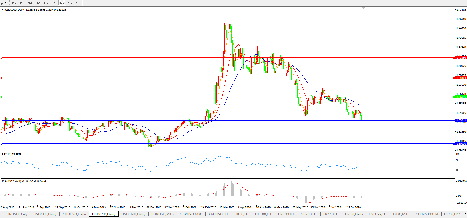 美元兑加元USDCAD 日线图:
