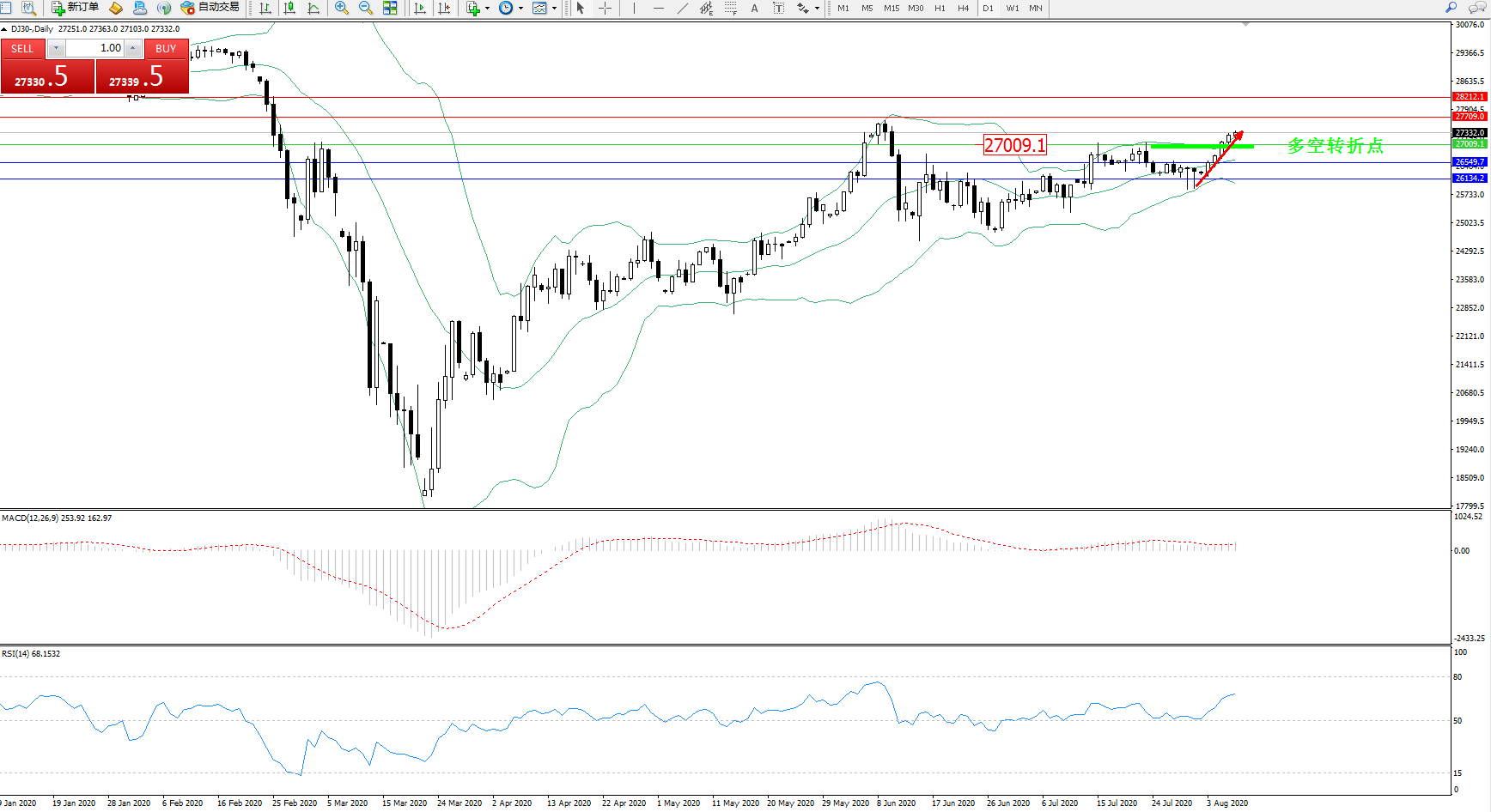 技术点评:多头动力延续布林带指标通道内持续震荡上扬态势良好,多次试探上下轨区间节点,突破布林带指标上轨附近节点后,有继续拉升态势,前期高位点近在咫尺,破位在即,布林带指标呈收口走势后,有再度张口迹象,MACD指标处于0轴线上方维持弱势整理持续平移中,RSI指标处于50均衡线上方维持弱势徘徊后多头动力发力拉升上扬中;