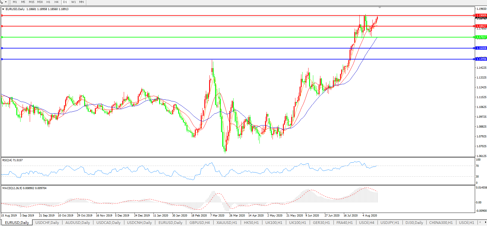 交易策略:1.1700上方看涨,目标1.1800、1.1900、1.2000