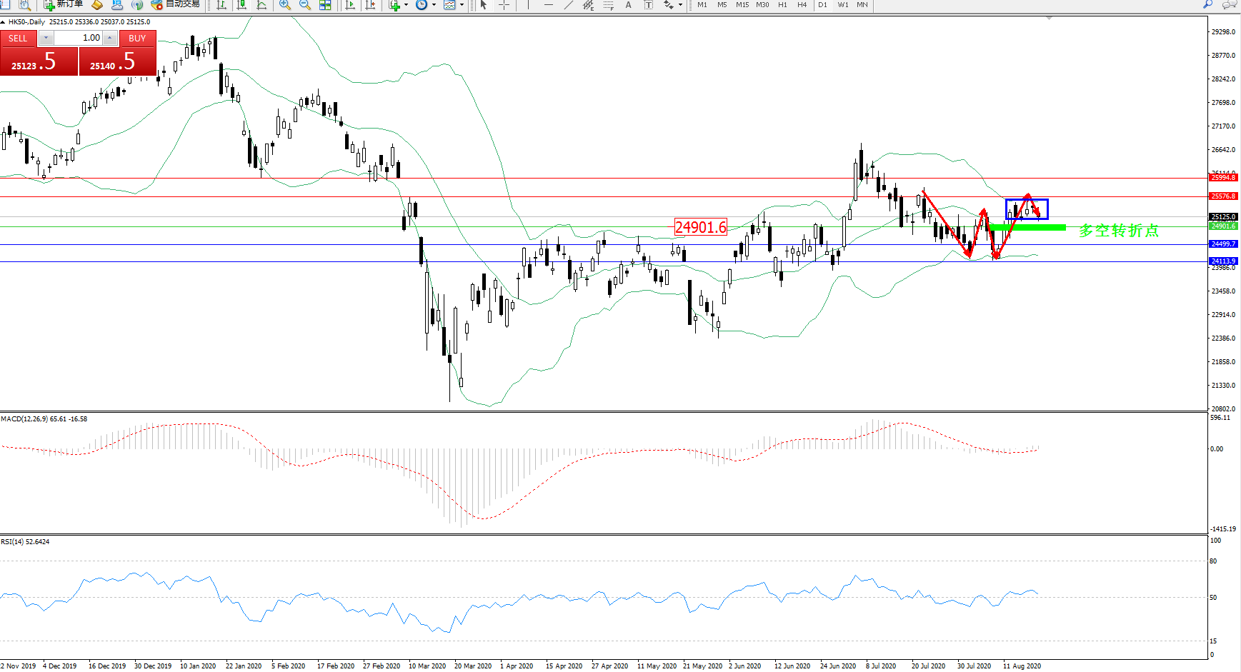 恒指HK50 ——日K线图显示: