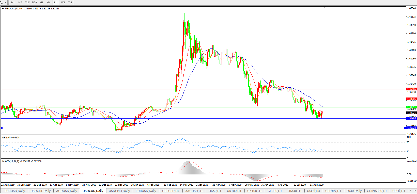 美元兑加元USDCAD 日线图:
