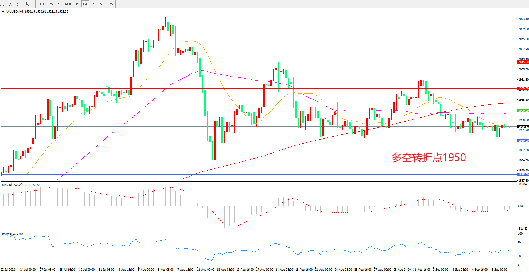 交易策略:在1950.00之下看跌,目标1910.00    1865.00