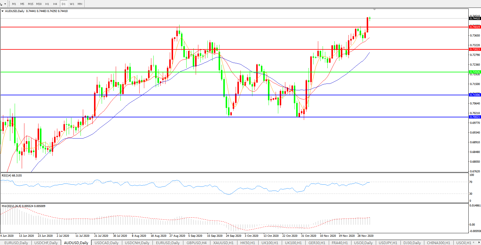 疫苗消息提振风险情绪,澳元兑美元前景持续改善