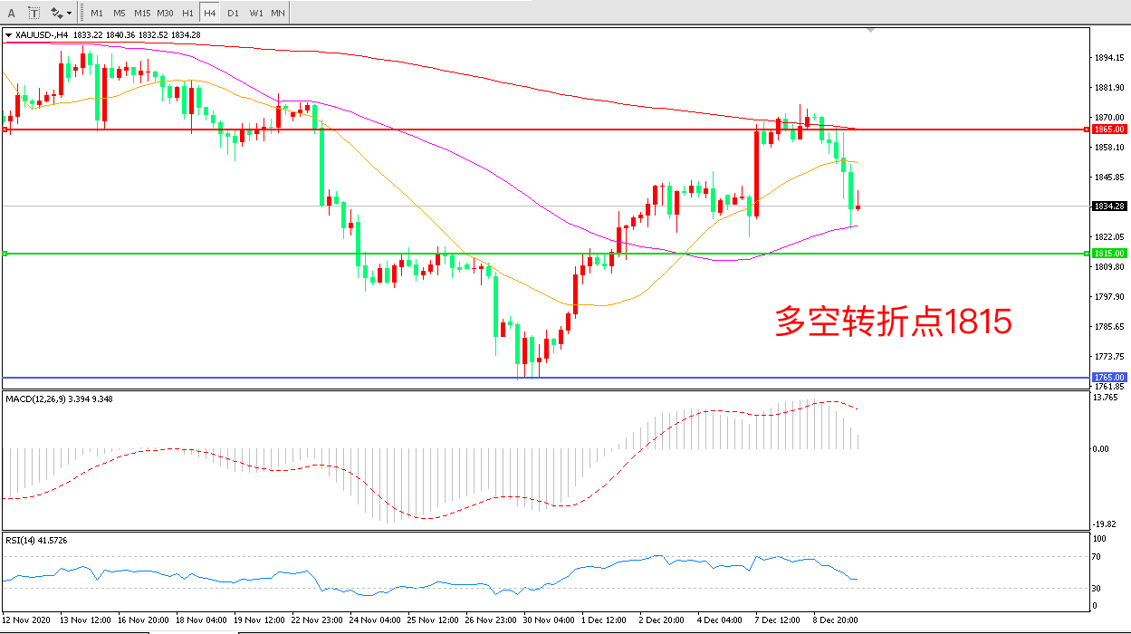 周三(12月9日),美国新一轮刺激法案的谈判遇到波折加上美元指数反弹,金价大幅下挫,日内跌幅接近2.5%,现货黄金震荡企稳后收报1835.52美元/盎司。参议院领袖麦康奈尔表示,对于他将法案中的一些问题进行搁置的提议,民主党人“泼冷水”的予以拒绝,这金价走势产生了巨大影响,因为只有财政刺激方案顺利推出才能削弱美元汇率,并产生更多流动性,溢出至黄金市场。