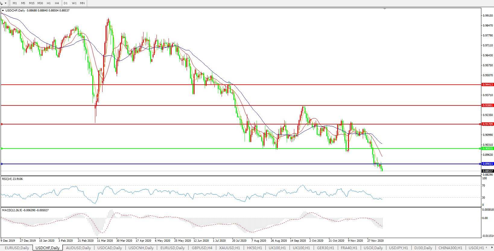 美元兑瑞郎USDCHF 日线图: