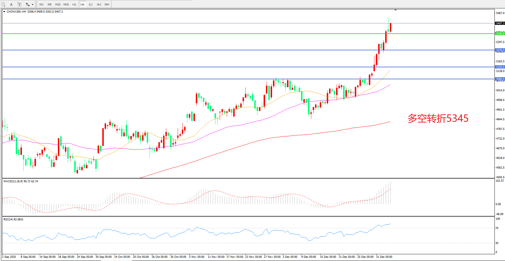 多空转折点:5345.00