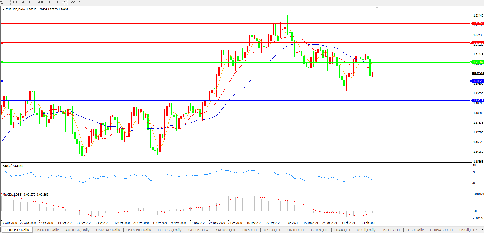 欧元兑美元EURUSD   日线图: