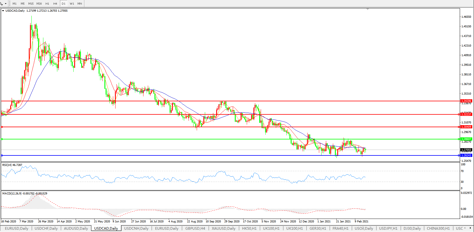 美元兑加元USDCAD    日线图: