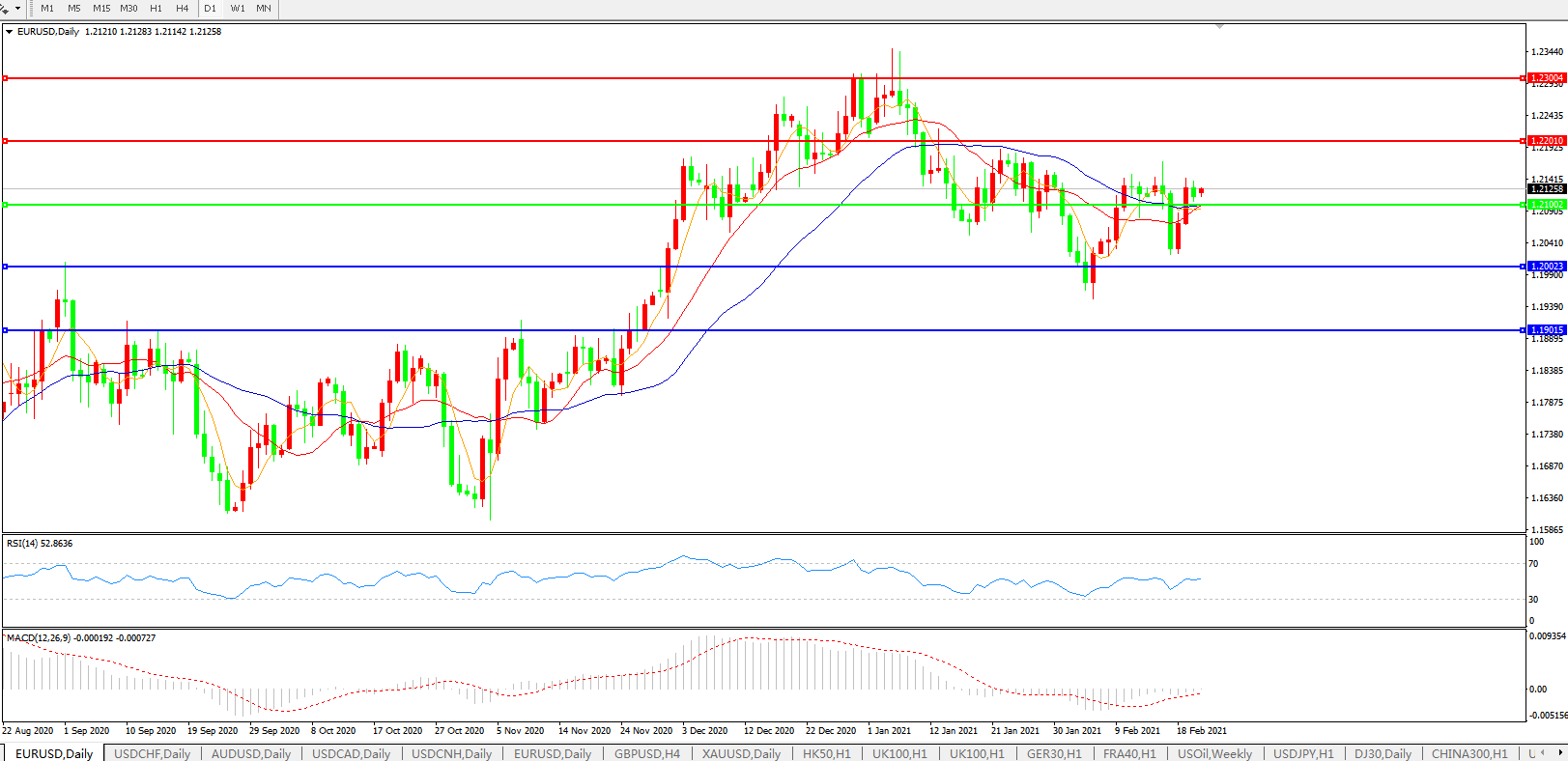 欧元兑美元EURUSD 日线图: