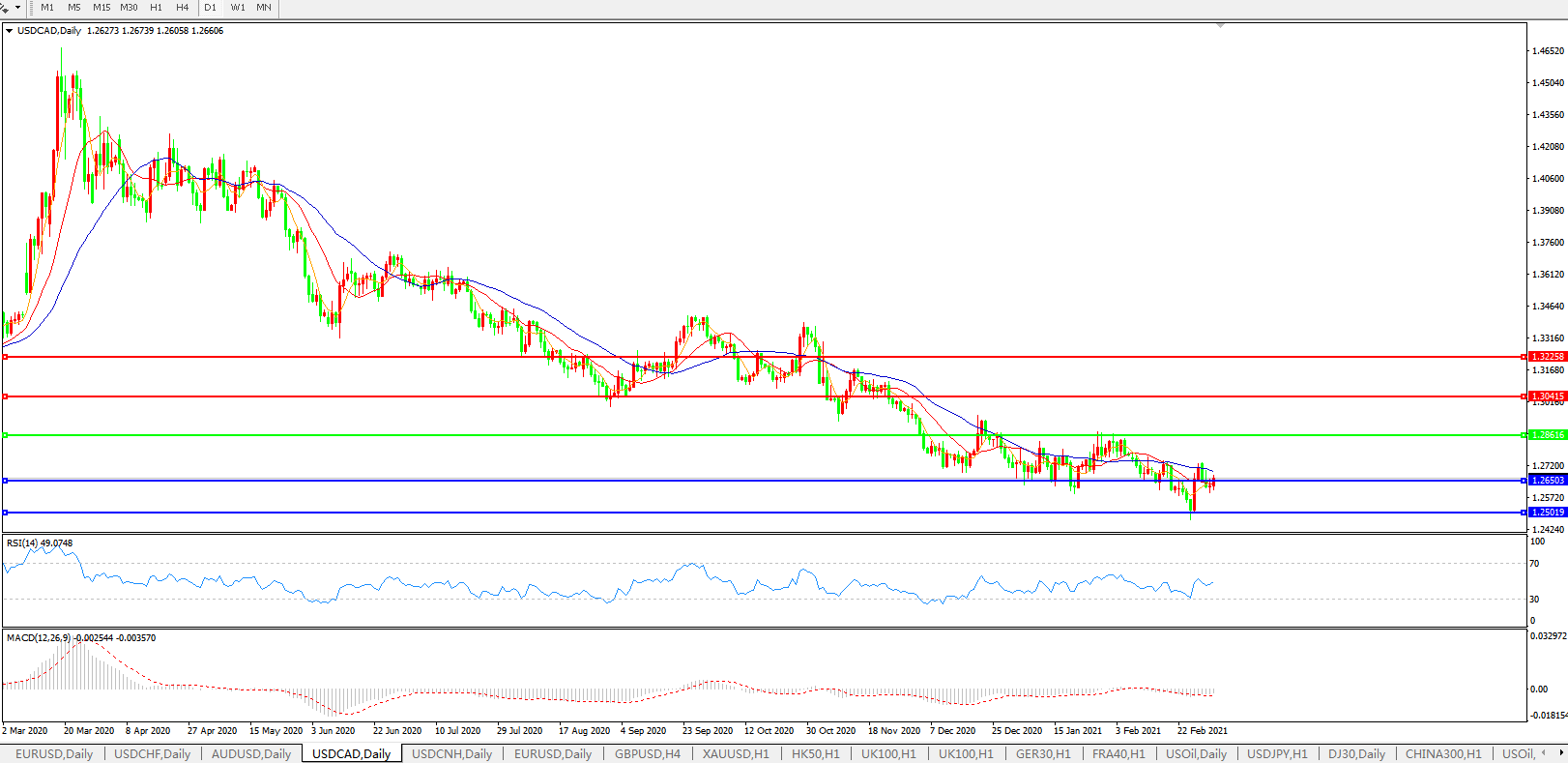 美元兑加元USDCAD    日线图: