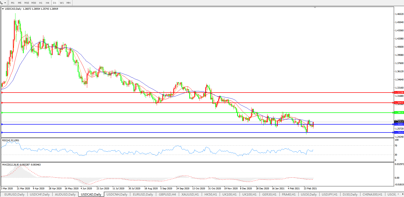 美元兑加元USDCAD 日线图: