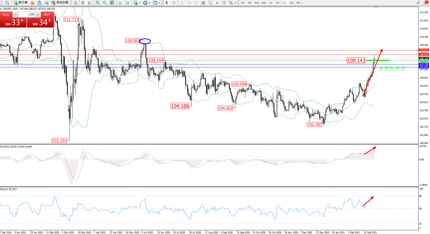 多空转折点:108.143