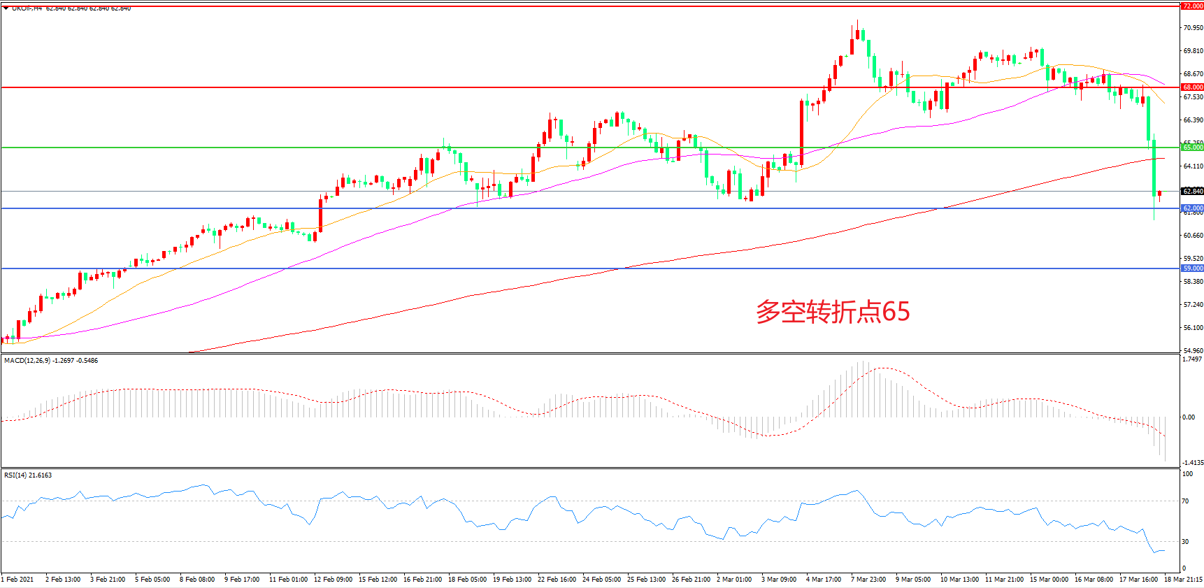 交易策略:在65.00之下看跌,目标62.00    59.00