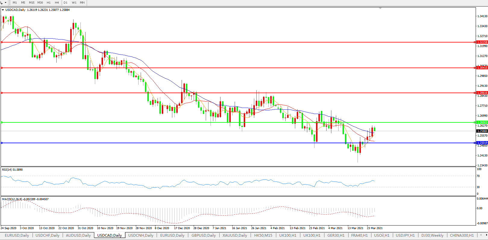美元兑加元USDCAD 日线图:
