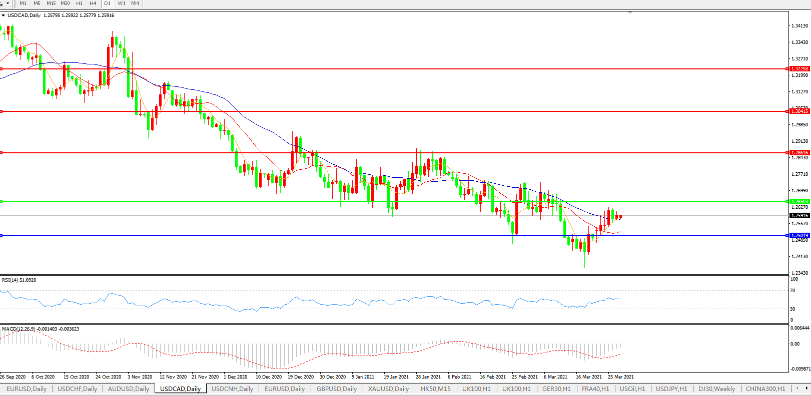 美元兑加元USDCAD 日线图: