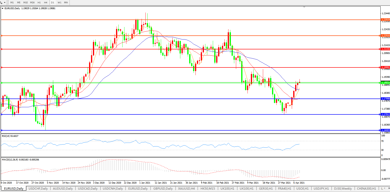 欧元兑美元EURUSD 日线图: