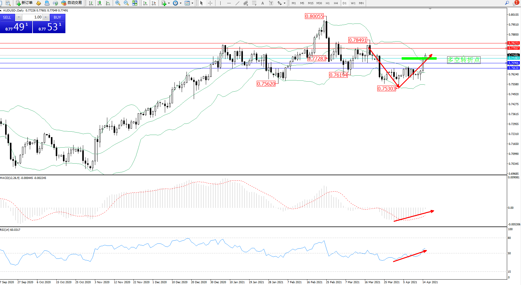 压制位:0.77937、0.78273