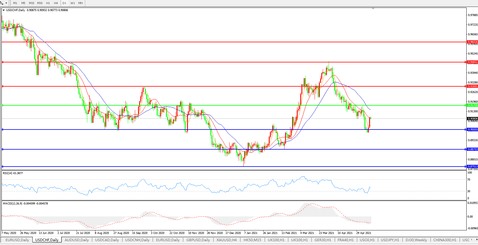 美元兑瑞郎USDCHF    日线图: