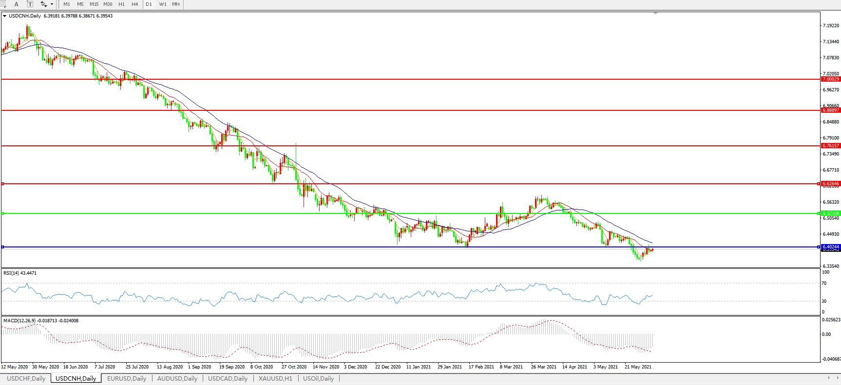 备选策略: 在6.5200之上,看涨,目标价位为6.6270,然后为6.7615。