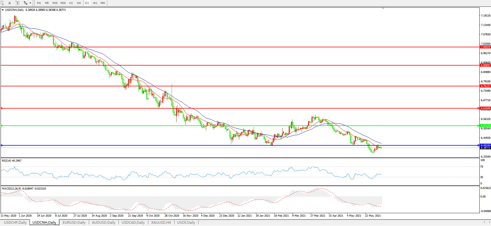 美元兑人民币USDCNH    日线图: