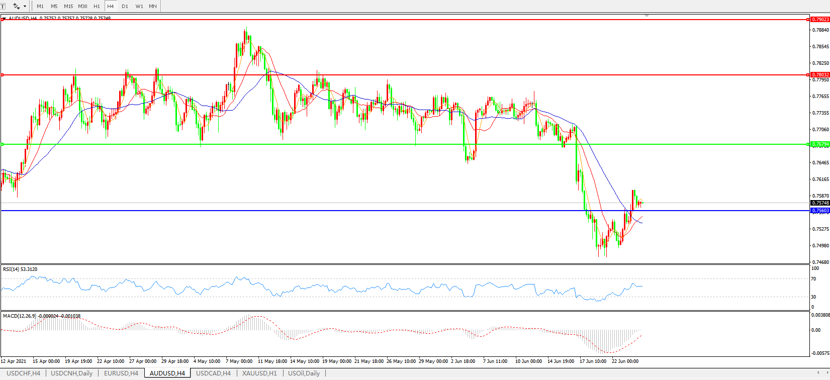 AUDUSD 4小时图: