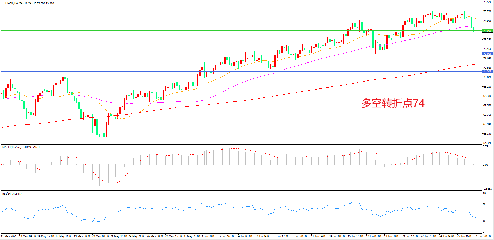 交易策略:在74.00之上看涨,目标77.00    80.00