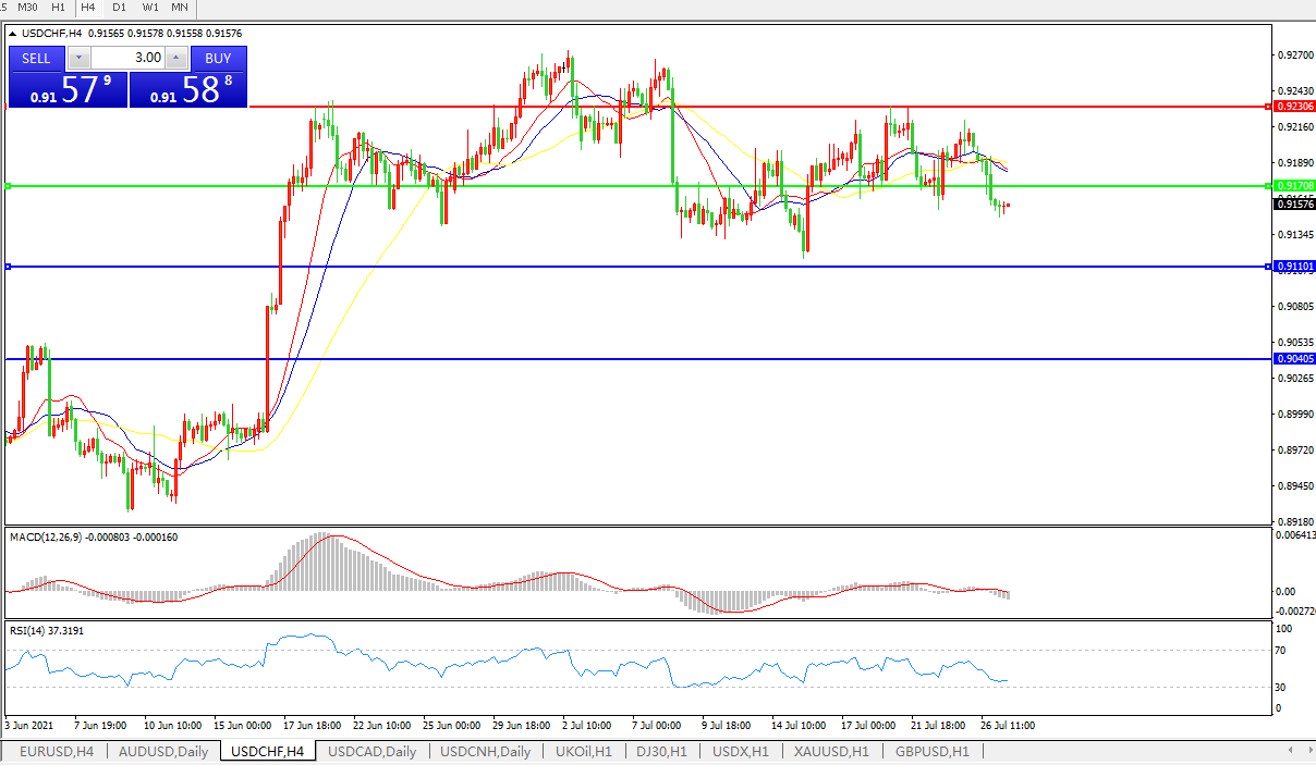 交易策略:0.9170下方看跌,目标0.9110、0.9040