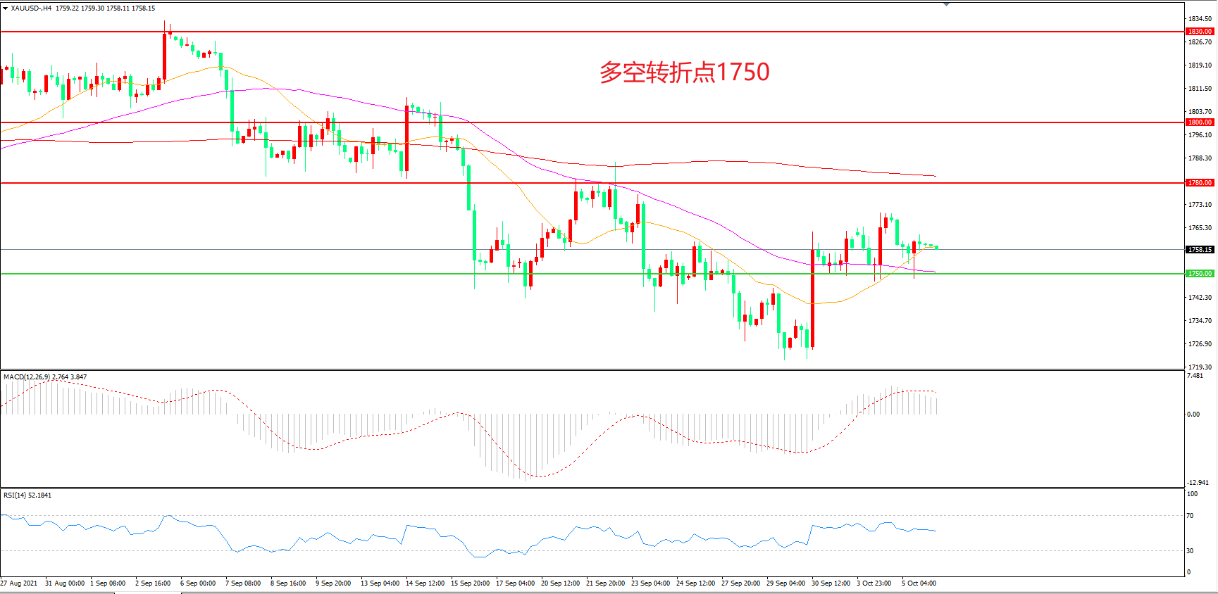 多空转折点:1750.00