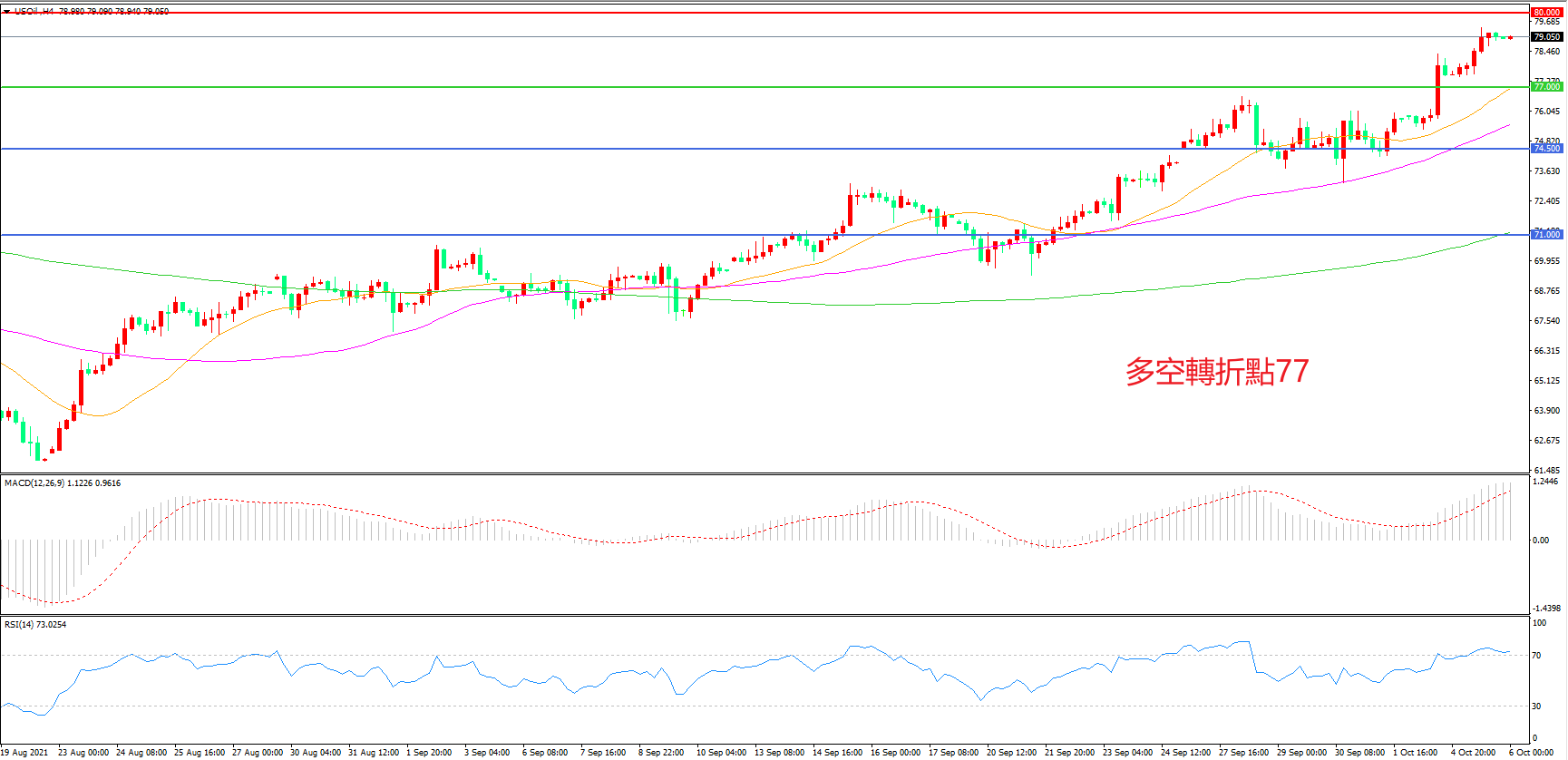 多空转折点:77.00