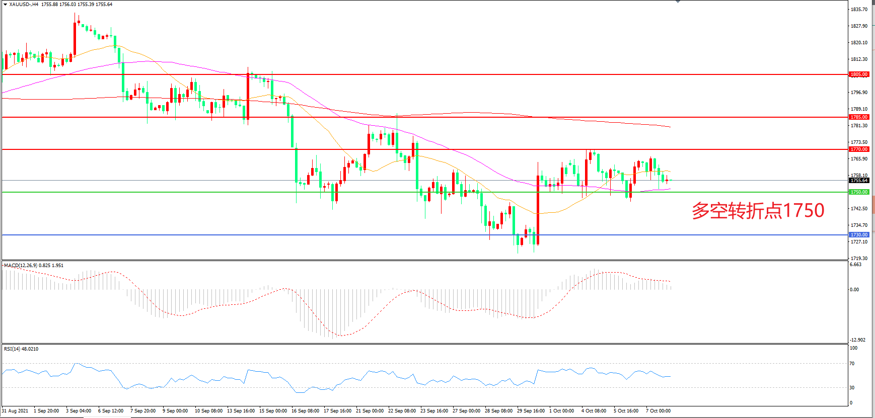 多空转折点:1750.00