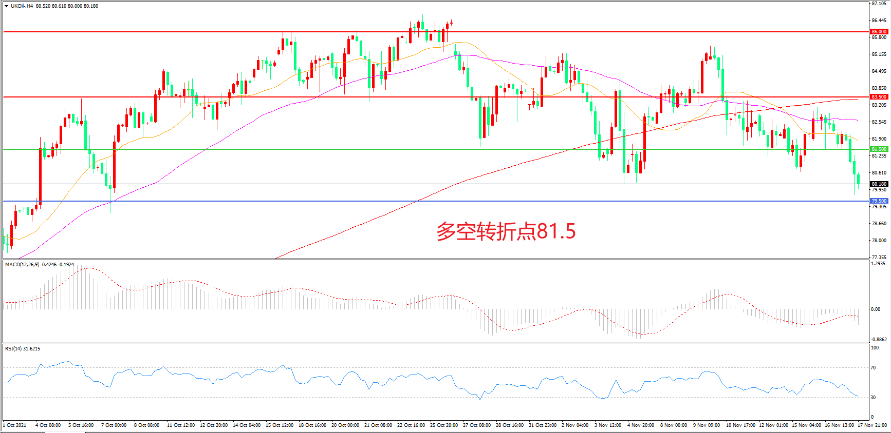 交易策略:在81.50之下看跌,目标79.50                77.00