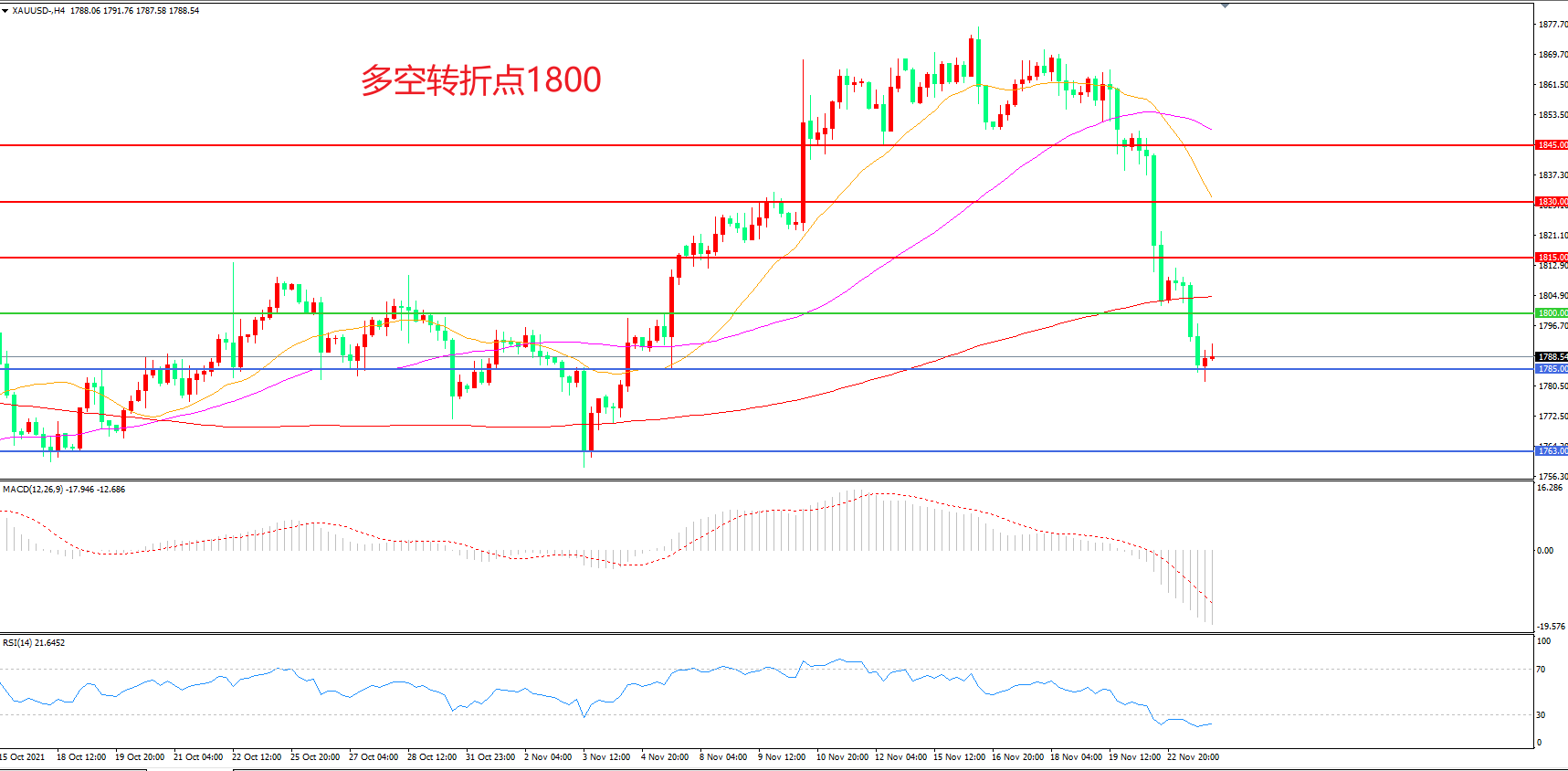 交易策略:在1800.00之下看跌,目标1785.00 1763.00