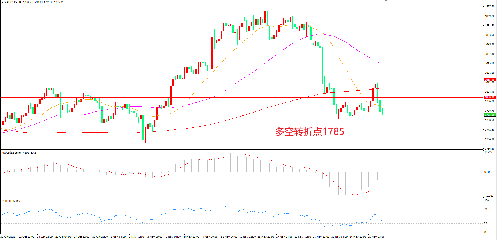多空转折点:1785.00