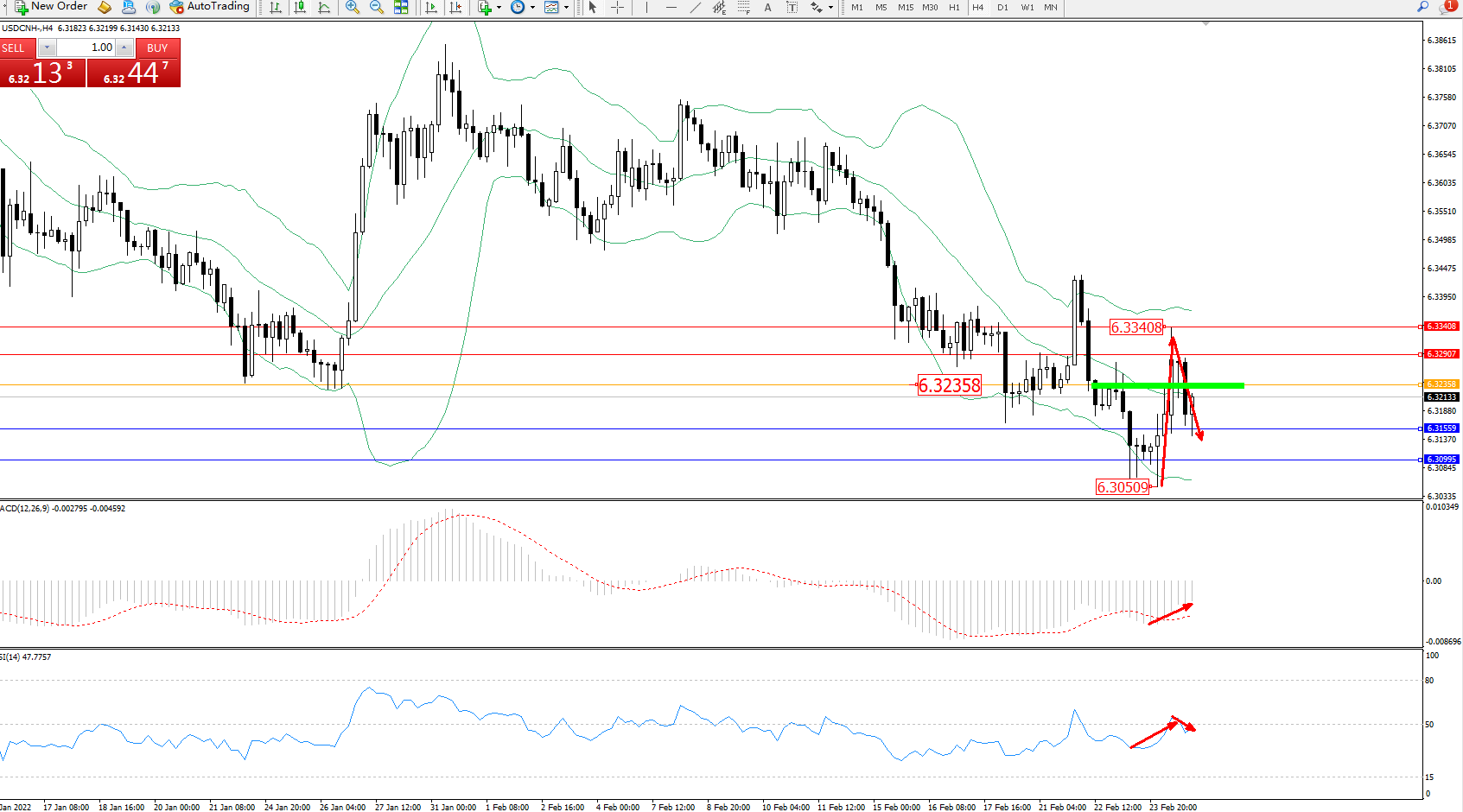 交易策略:6.32358下方看跌,目标6.31559、6.30995