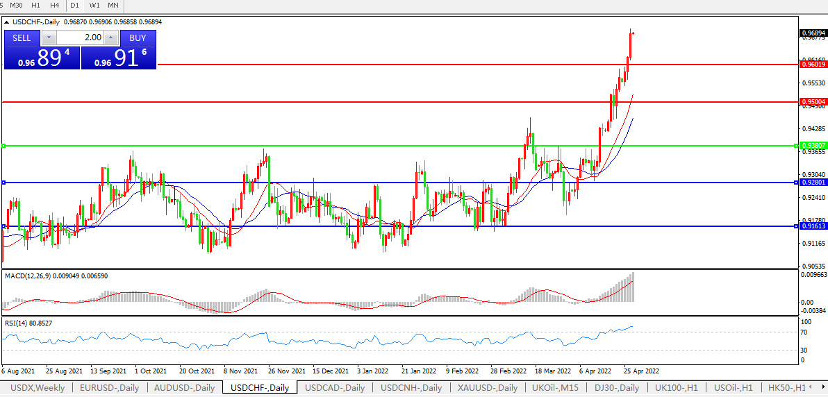 美元兑瑞郎USDCHF 日线图: