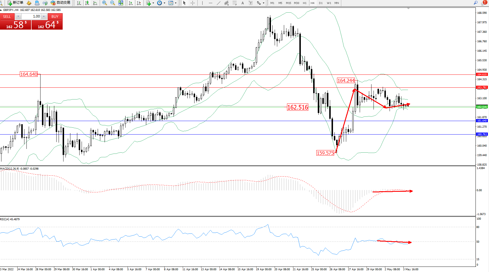 交易策略:162.516上方看涨,目标163.782、164.610