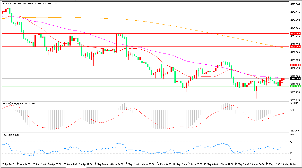 4小时图看,标普500以3900为依托小幅反弹,整体表现回暖,均线系统走平,MACD红柱增加,RSI指标走平,日内横盘震荡概率较大。