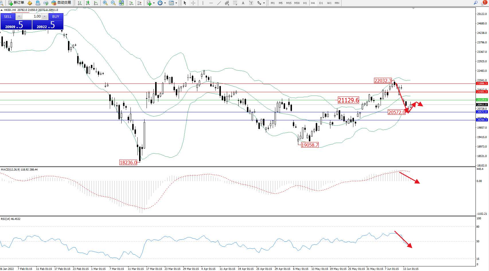 技术点评:高位空头动力震荡下挫,触及布林带指标下轨20572附近节点后震荡,短期或维持在中下轨区间整理,布林带指标呈收口走势中,MACD指标处于多头区域维持震荡回撤,RSI指标处于多头区域维持震荡向下移动至50均衡线下侧徘徊;