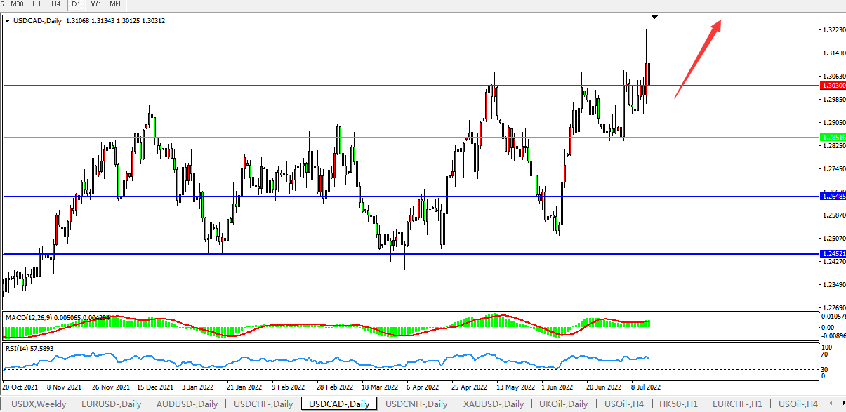 美元兑加元USDCAD 日线图: