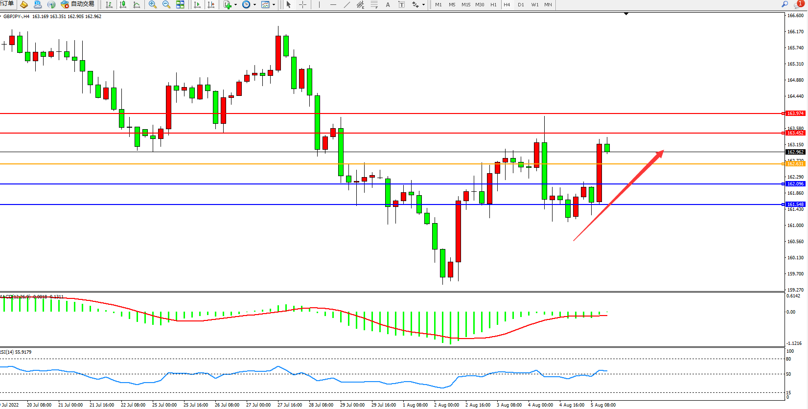 交易策略:162.631上方看涨,目标163.452、163.974