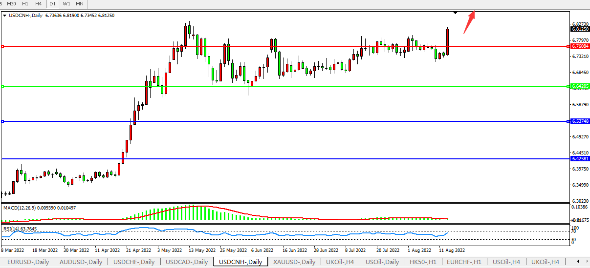 美元人民币USDCNH 日线图: