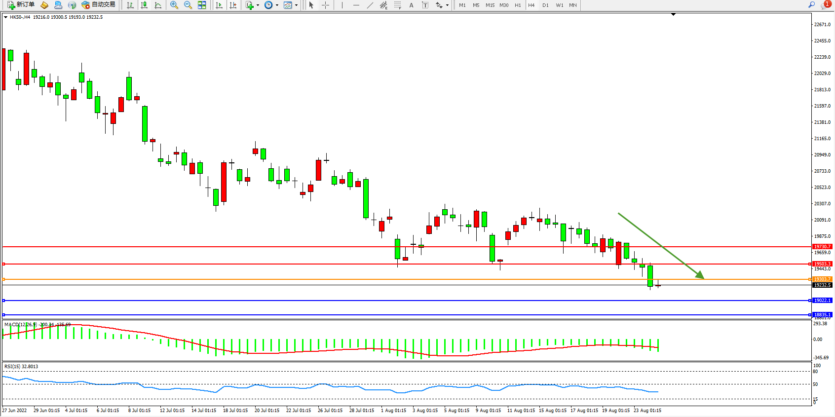 恒指HK50 4小时图