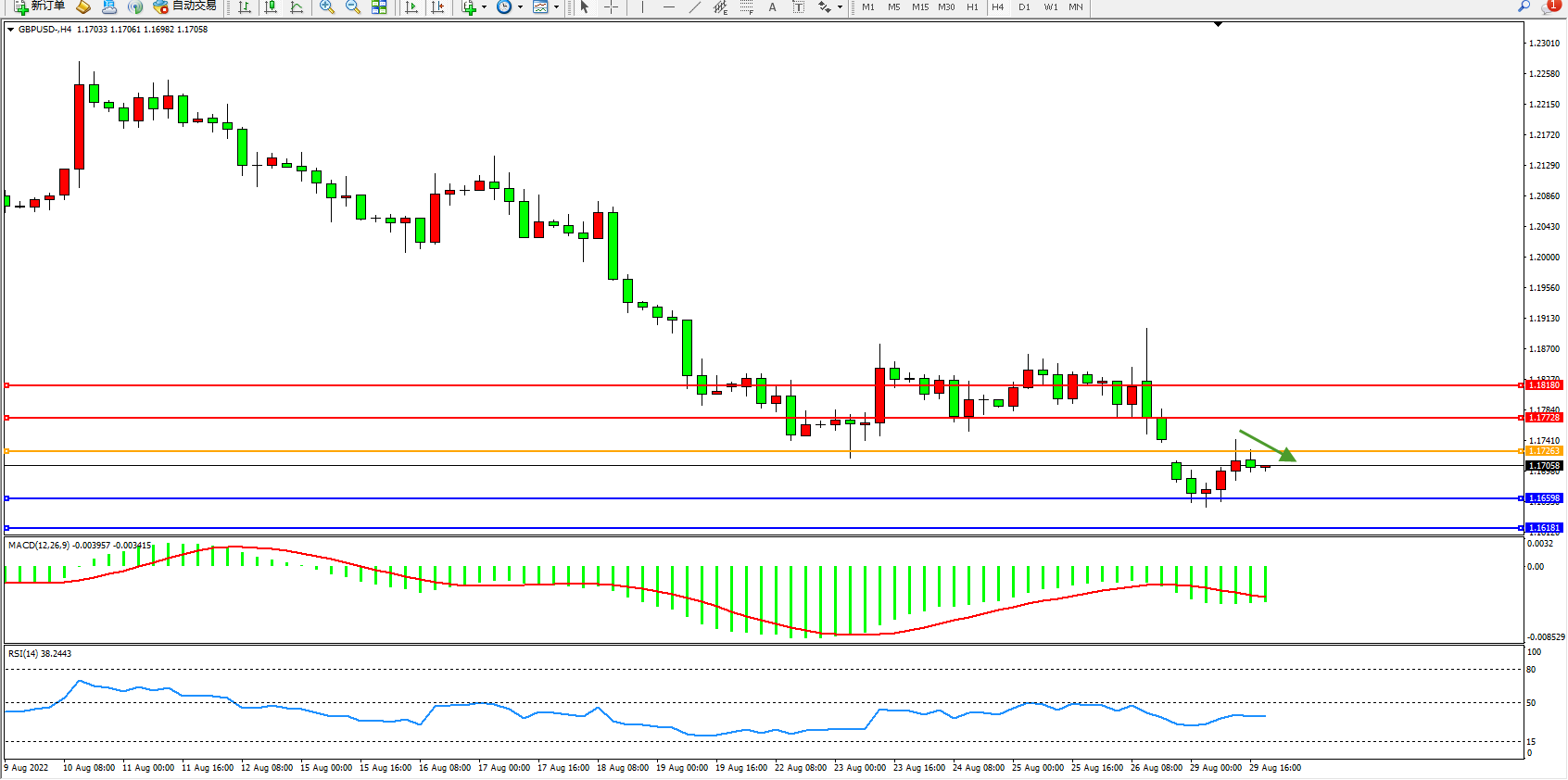压制位:1.17728、1.18180