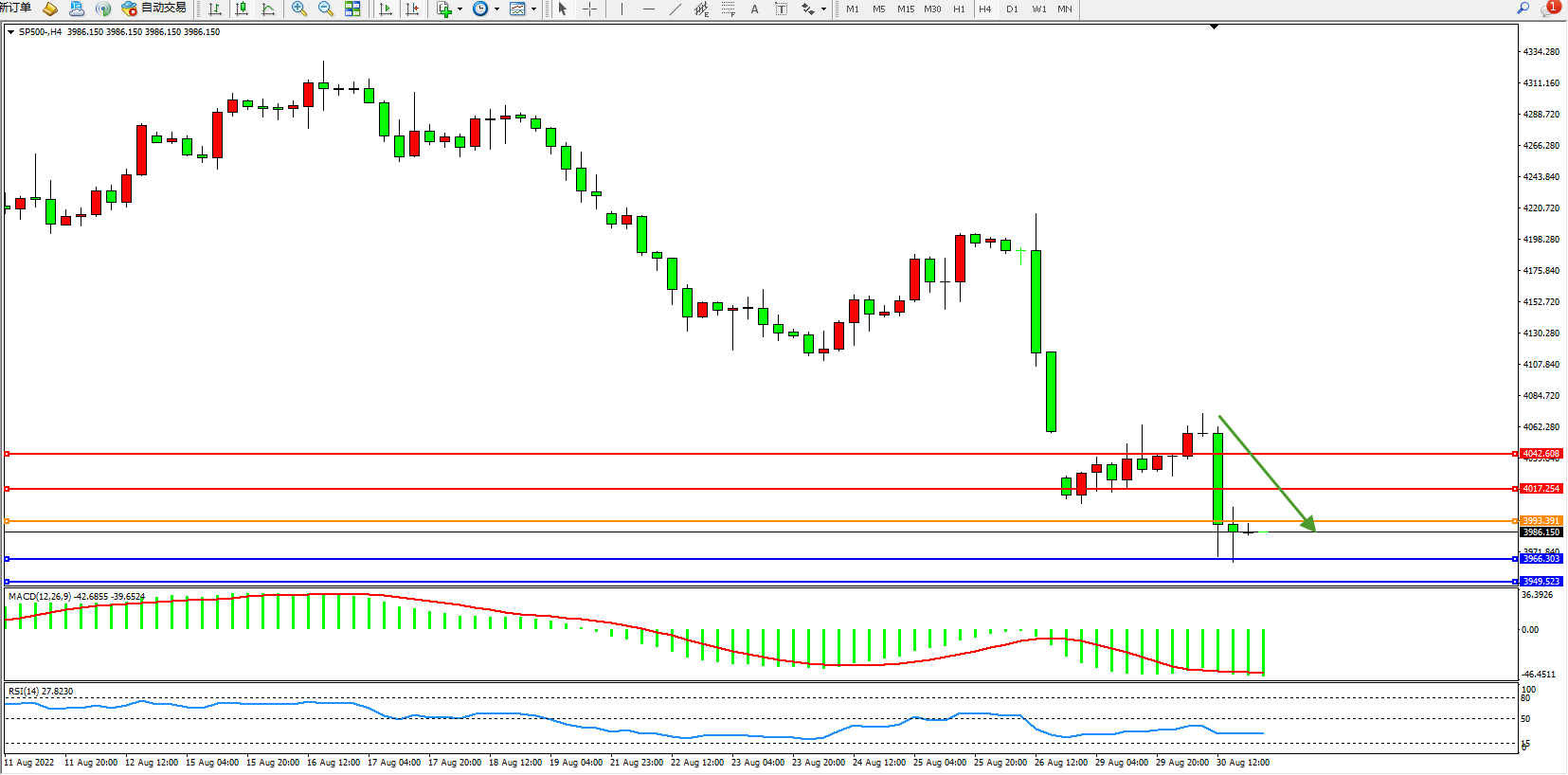 标普SP500——4小时K线图显示: