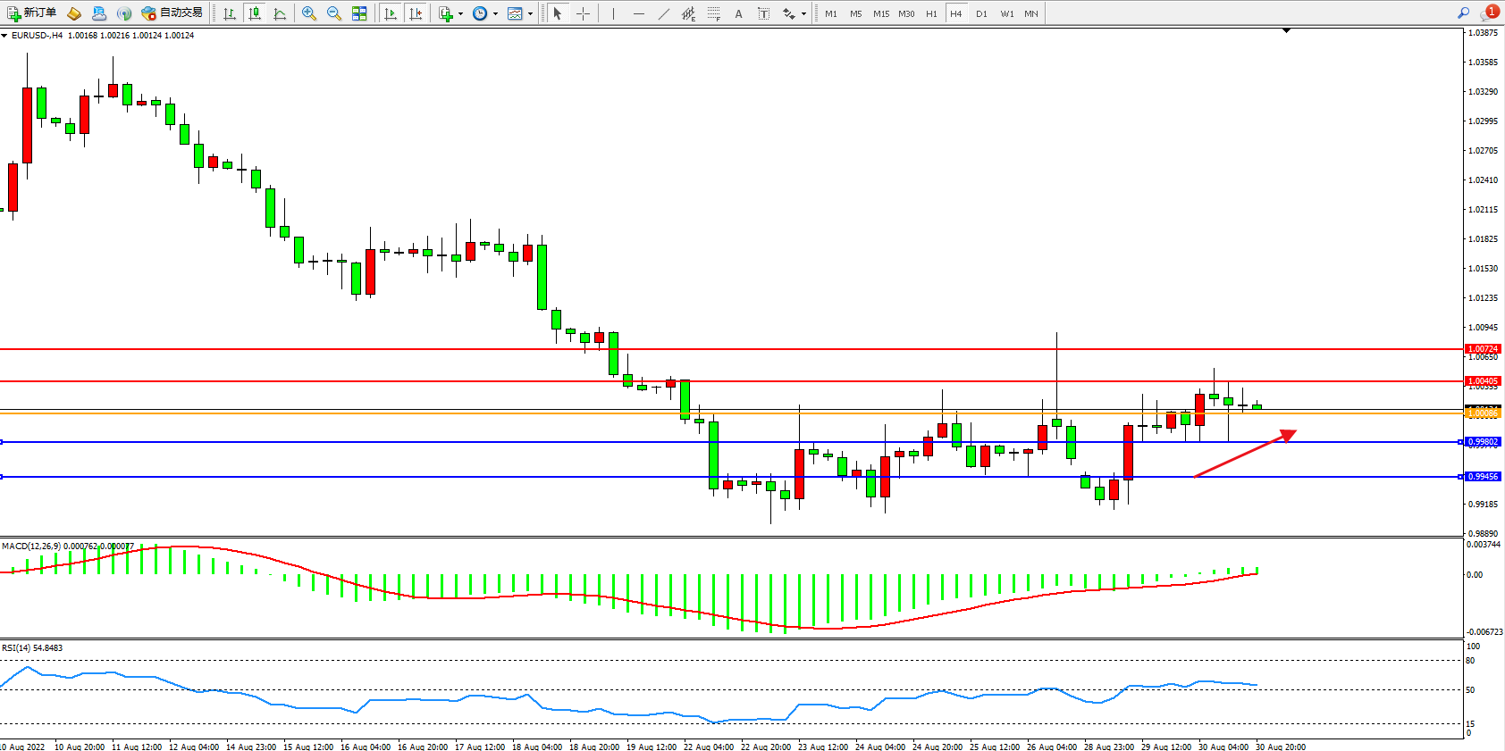 交易策略:1.00086上方看涨,目标1.00405、1.00724