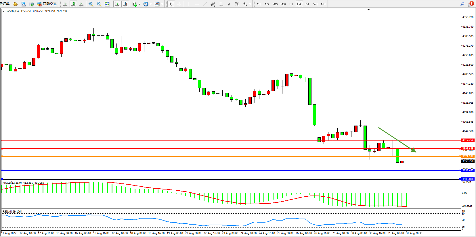 标普SP500——4小时K线图显示: