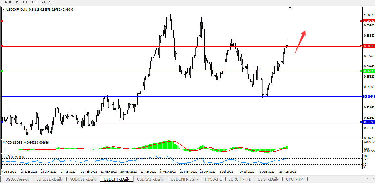 美元兑瑞郎USDCHF 日线图