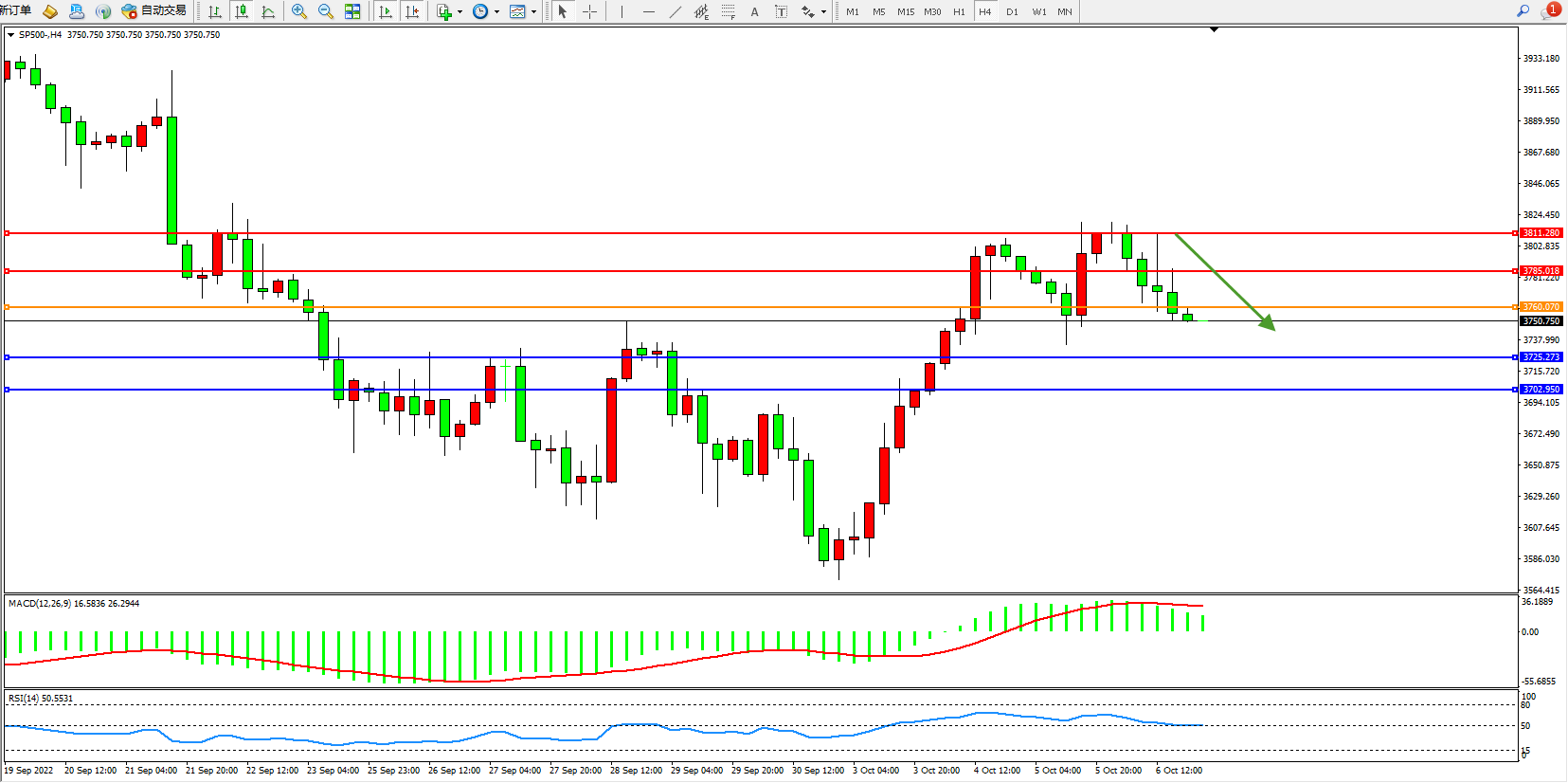 标普SP500——4小时K线图显示: