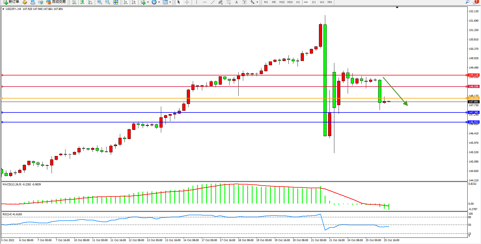 多空转折点:148.050